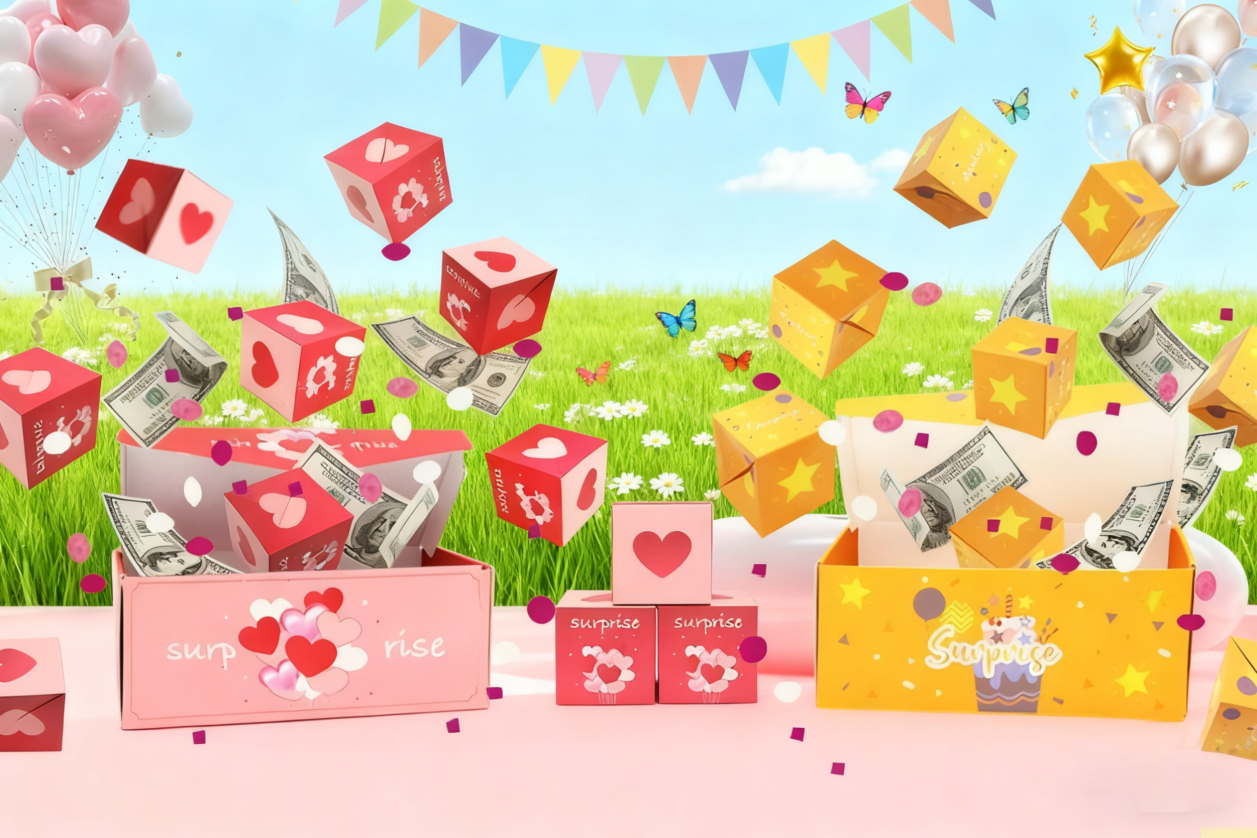 This Surprise Box Gift Box is more than just a present. It's the ultimate way to show your loved ones how much they mean to you. This Surprise Box Gift Box is sure to bring a festive atmosphere to any event.